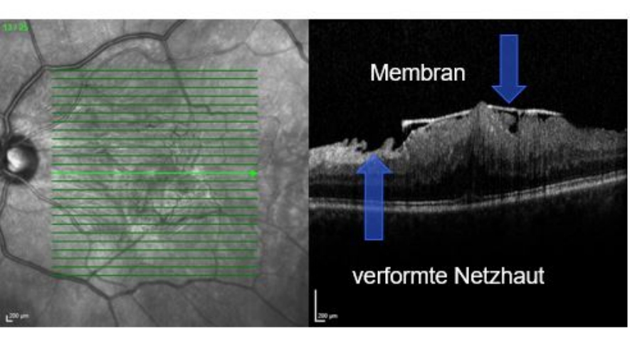 Die epiretinale Fibroplasie ist eine Erkrankung an der Grenzschicht zwischen Glaskörper und Netzhaut, bei der kontraktionsfähige Zellen eine verdichtete Schicht bilden, die allmählich zur Schrumpfung neigt.
